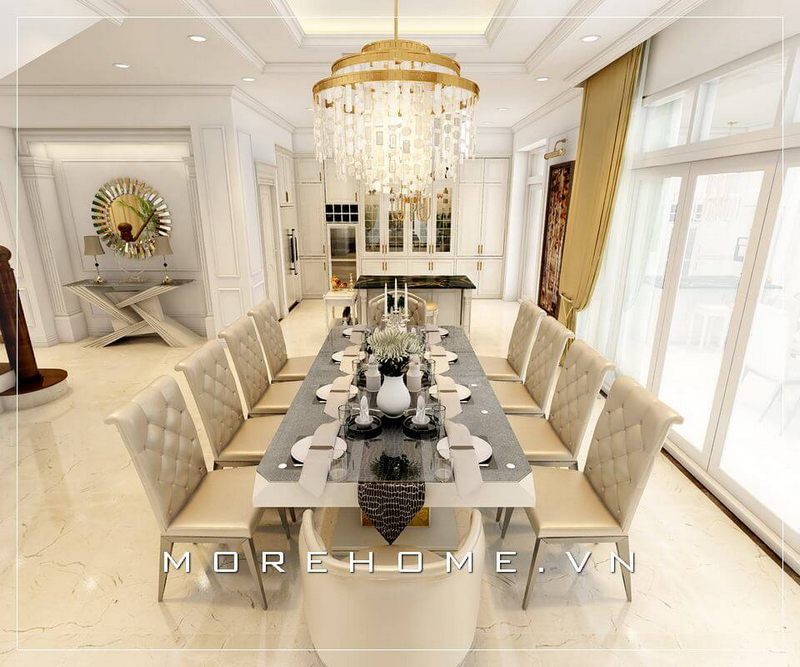 Thiết kế nội thất phòng ăn biệt thự tân cổ điển sang trọng và đẳng cấp