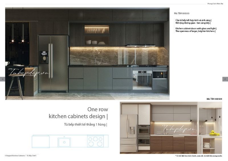 Nhiều mẫu thiết kế tủ bếp hiện đại kiểu chữ i trẻ trung và gọn gàng dành cho các gia chủ lựa chọn trong thời đại số ngày nay