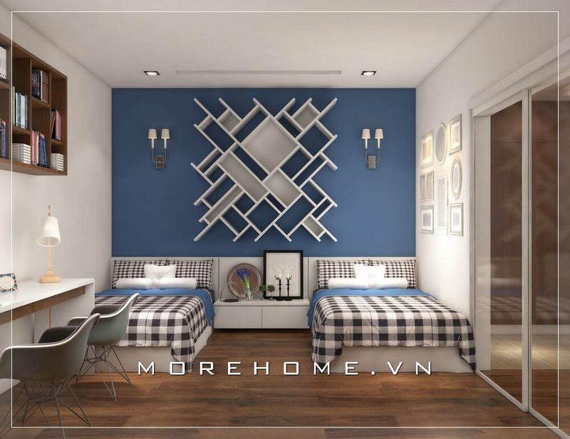 Thiết kế nội thất phòng ngủ cho 2 bé trai theo phong cách hiện đại, độc đáo với cách bố trí sáng tạo và tiện nghi cho không gian học tập của con.
