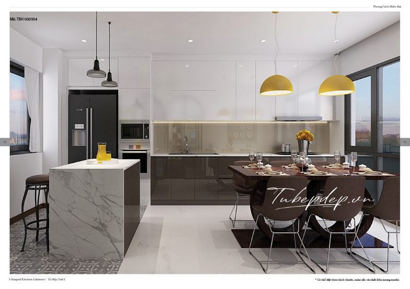 Tủ bếp acrylic màu trắng hiện đại với thiết kế chữ i đơn giản sẽ làm cho phòng bếp của bạn trở nên đẹp hơn.