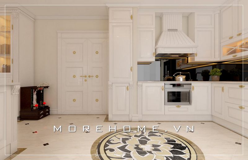 Thiết kế nội thất phòng bếp chung cư phong cách tân cổ điển sang trọng và đẳng cấp